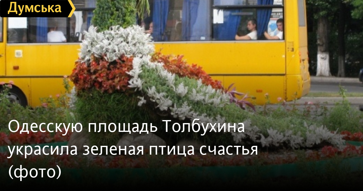 Одесское КП «Зелентрест» продолжает украшать город живыми скульптурами из травы и других растений. На этот раз такая фигура (их еще называют топиарными) появилась на площади Толбухина.