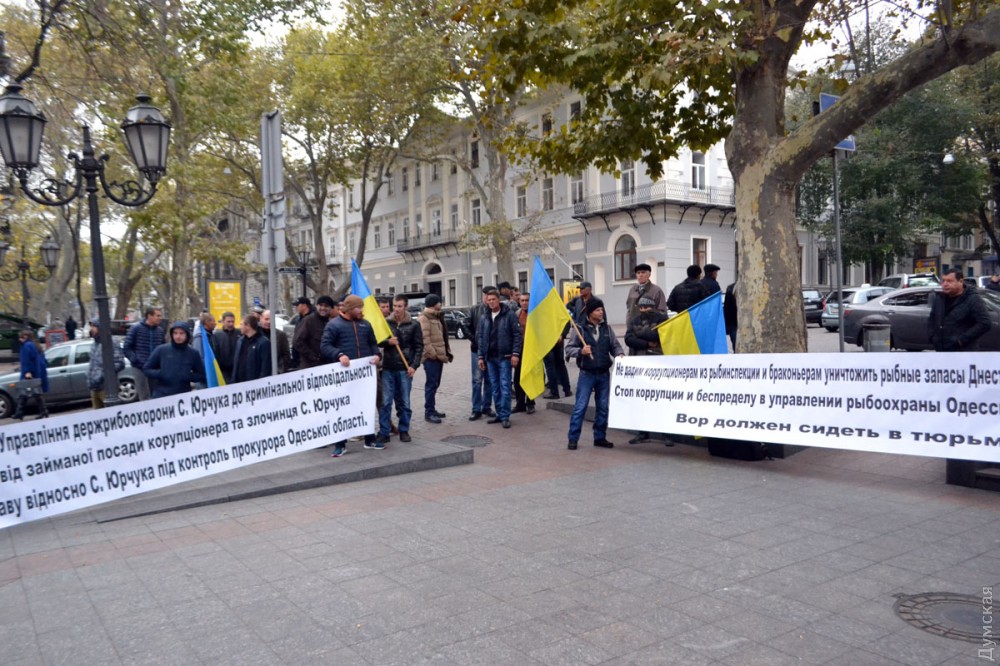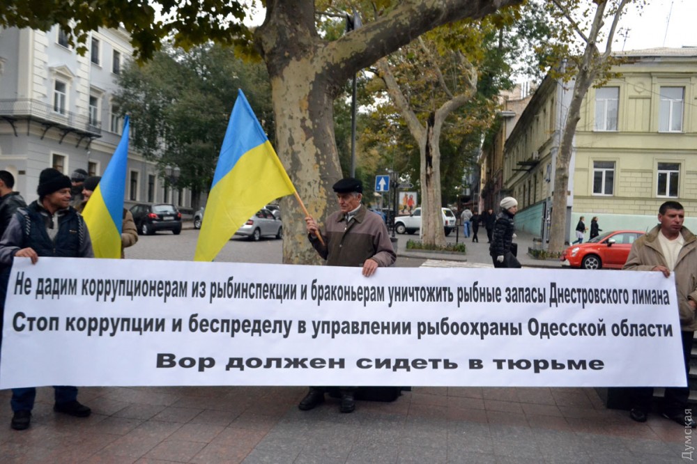 Сегодня прокуратуру в Одесской области пикетировало несколько десятков человек, которые представились рыбаками Днестровского лимана и требовали от надзорного ведомства разобраться выдачей разрешений на вылов рыбы «браконьерам».