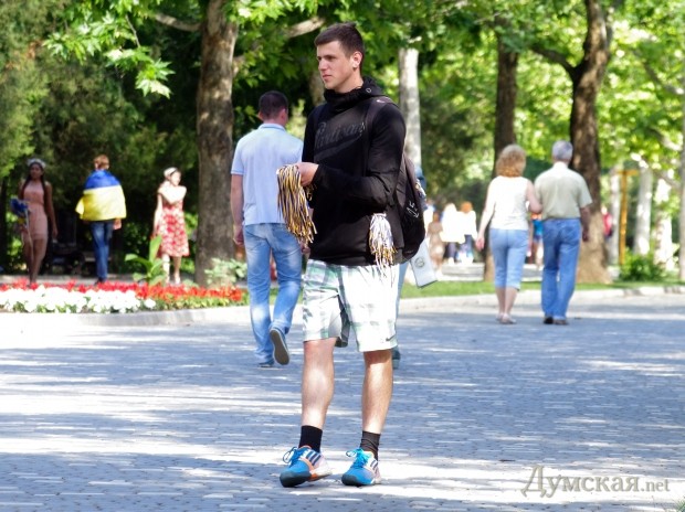28 июня в одесском парке Шевченко, где утром официально стартовало празднование Дня Конституции, были замечены «бродячие» торговцы государственной символикой.