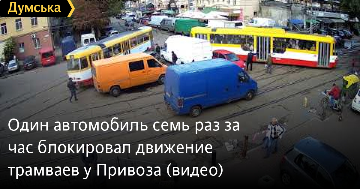 Опубликовано видео приключений неправильно припаркованного автомобиля на пресечении нескольких трамвайных путей возле рынка Привоз. В течение одного часа пассажиры электротранспорта передвигали машину семь раз!