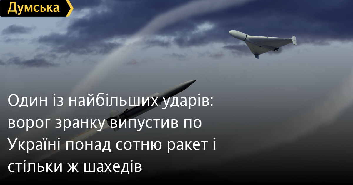 «Це був один із найбільших ударів — комбінований. Більше сотні ракет різних типів і близько сотні «шахедів». І як більшість попередніх російських ударів, цей такий же підлий, націлений на критичну цивільну інфраструктуру, — наголосив голова держави. — По більшості наших регіонів, від Харківщини і Києва до Одеси і західних областей. На жаль, є загиблі. Мої співчуття всім рідним і близьким. Є десятки поранених — усім надається необхідна допомога».