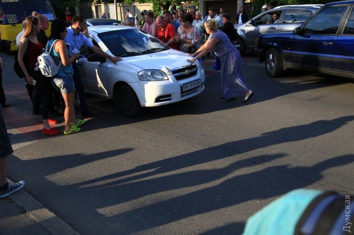 Присутствующие на месте сотрудники полиции заметили происшествие и через 50 метров заставили спешащего таксиста остановиться. В результате разбирательств выяснилось, что пешеходы отделались синяками и решили не предъявлять претензий водителю. В итоге мужчину оштрафовали за непропуск пешехода на 255 гривен и отпустили.