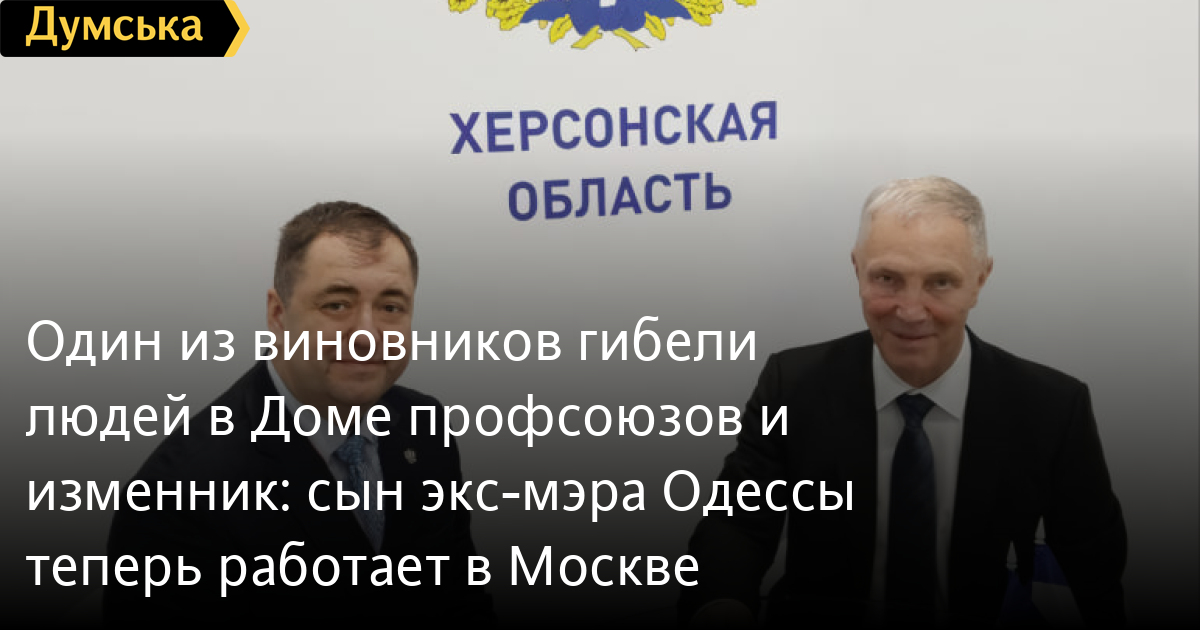 Как сообщил коллаборант Владимир Сальдо, возглавляющий оккупационную администрацию Херсонской области, сын экс-мэра Одессы назначен руководителем «представительства региона при правительстве рф».