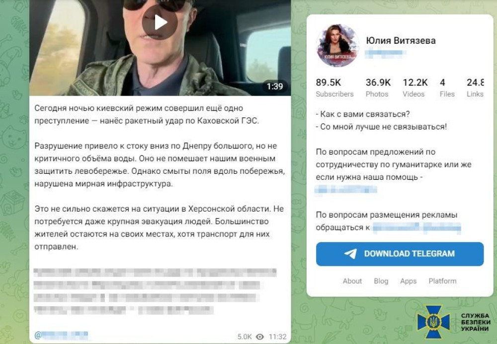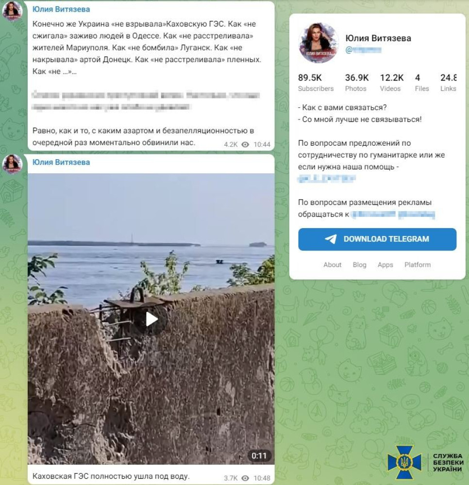 Саме вона 6 червня 2023 року однією з перших почала активно виправдовувати підрив російськими окупантами Каховської ГЕС. Для цього московська блогерка опублікувала відповідні дописи на власному телеграм-каналі, який нараховує майже 100 тис. підписників.