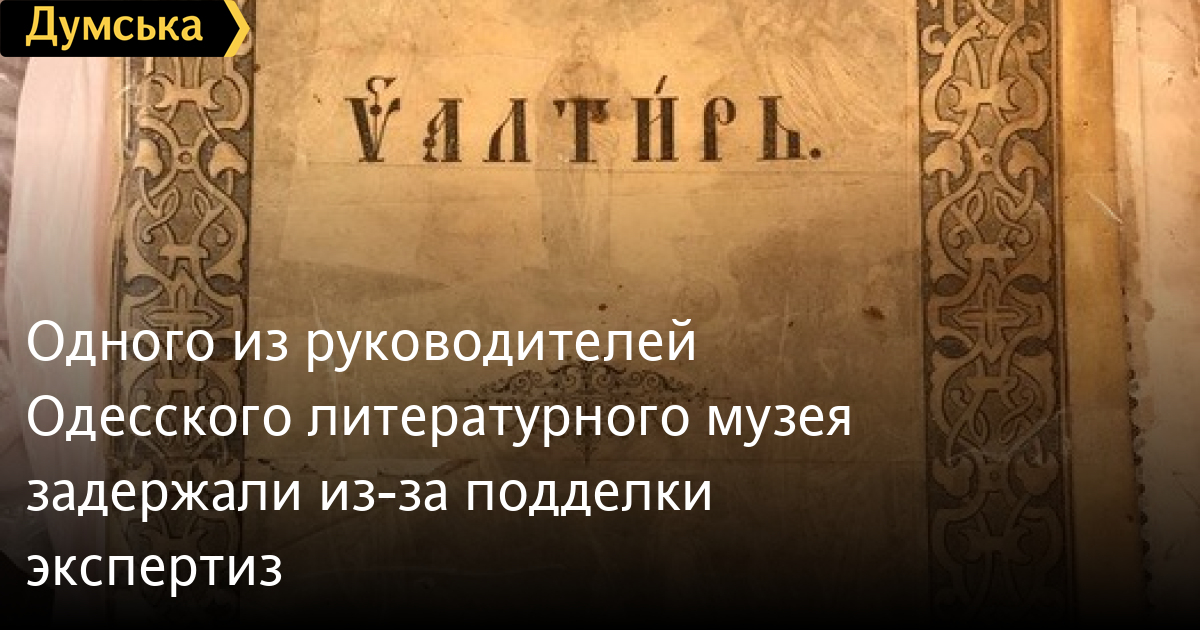 Одного из руководителей Одесского литературного музея задержали из-за подделки экспертизСотрудники Службы безопасности Украины совместно с прокуратурой разоблачили механизм фальсификации экспертиз культурных и исторических ценностей руководством Одесского литературного музея. Как сообщили в пресс-службе СБУ, правоохранители установили, что эксперты-книговеды музея систематически фальсифицировали выводы художественных экспертиз раритетных изданий. В частности древние религиозные книги планировалось вывезти за границу для продажи на аукционах. Оперативники спецслужбы задокументировали, что должностные лица требовали четыреста долларов за экспертизу трем предметам. Сотрудники СБУ задержали одного из руководителей Одесского литературного музея Управление культуры, национальностей, религий и охраны объектов культурного наследия облгосадминистрации во время получения второй части взятки в размере двухсот пятидесяти долларов США за предоставление положительного заключения художественной экспертизы. СМЕРТЬ РОСІЙСЬКИМ ОКУПАНТАМ! Помітили помилку? Виділяйте слова з помилкою та натискайте control-enter |