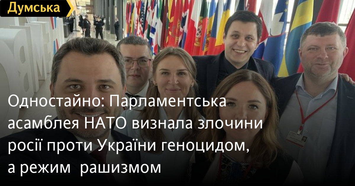 Одностайно: Парламентська асамблея НАТО визнала злочини росії проти України геноцидом, а режим — рашизмомПарламентська Асамблея НАТО одностайно визнала злочини росії проти України геноцидом, а правлячий в рф терористичний режим — рашизмом. Про це повідомив голова постійної делегації України в ПА НАТО Єгор Чернєв. За його словами, це рішення було прийнято одностайно. Крім того, ПА НАТО закликала уряди своїх країн відкрито оголосити на саміті у Вільнюсі про те, що Україна стане членом Альянсу і погодити наступні конкретні кроки для вступу України до НАТО. «Всі наші ключові побажання щодо фінального тексту декларації враховані. Там є і підтримка міжнародного трибуналу, і допомога Україні до перемоги і після неї, і засудження ідеології рашизму, і відновлення територіальної цілісності, і санкції, і репарації, і план Маршалла, і багато іншого. Ми довго боролися за такі прямі та чіткі формулювання», — підкреслив Єгор Чернєв. СМЕРТЬ РОСІЙСЬКИМ ОКУПАНТАМ! Помітили помилку? Виділяйте слова з помилкою та натискайте control-enter |
