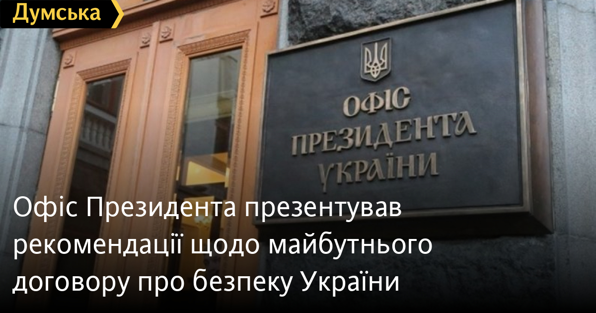 На сайті Офісу президента України опубліковано рекомендації щодо майбутньої розробки міжнародного договору про безпеку України.