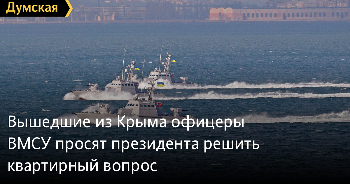 Группа офицеров Военно-морских сил Украины, вышедших в 2014 году из оккупированного Крыма, обратилась с открытым письмом к президенту Украины Петру Порошенко. Они просят верховного главнокомандующего обратить внимание на ситуацию с обеспечением «крымчан» жильем — взамен утраченного на полуострове. По словам авторов письма, никакого прогресса в этом вопросе не наблюдается все четыре года, что идет война.