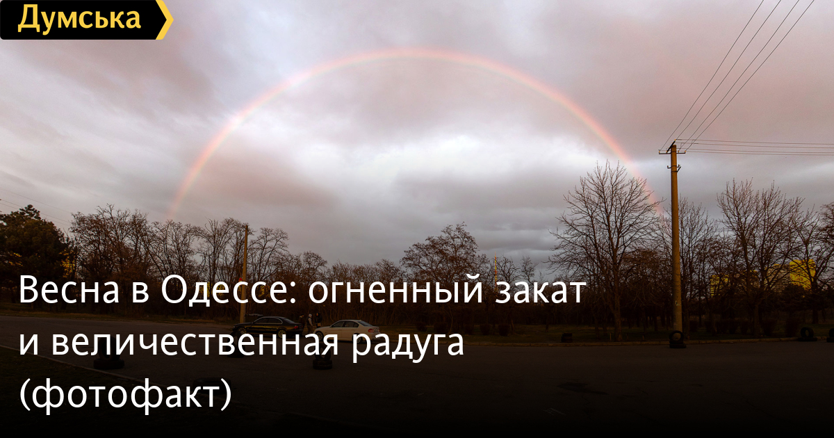 Вечер шестого дня весны порадовал одесситов необычным закатом. Садящееся солнце не только окрасило горизонт и тяжелые тучи в разнообразные оттенки оранжевого, но и создало огромную радугу. Фото — Александр Гиманов СМЕРТЬ РОССИЙСКИМ ОККУПАНТАМ! Заметили ошибку? Выделяйте слова с ошибкой и нажимайте control-enter |
