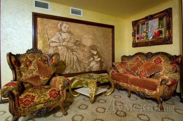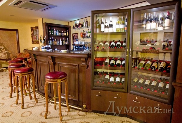 Поднявшись по мраморной лестнице, можно расположиться в Lobby баре, где посетителям предложат богатую винную карту и не менее богатое барное меню.