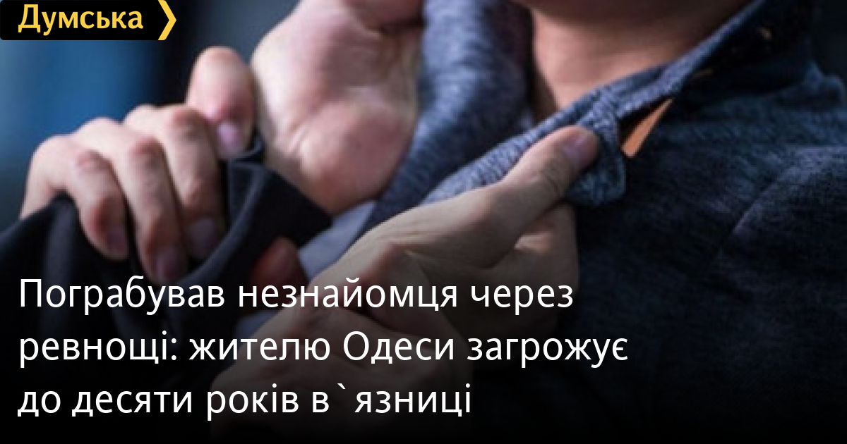 Пограбував незнайомця через ревнощі: жителю Одеси загрожує до десяти років в`язниціЖителю Одеси, який пограбував незнайомого молодика, бо приревнував його до своєї дівчини, загрожує до десяти років позбавлення волі. Як повідомили у пресслужбі поліції області, до правоохоронців звернувся мешканець Березівської громади, який розповів, що приїхав до Одеси в гості, а в одному з провулків у центрі міста на нього напав невідомий. Через кілька годин зловмисника затримали. Виявилося, що він побачив, як його дівчина під час прогулянки знайомиться з потерпілим і приревнував її. Він почав лаятися з незнайомцем, штовхнув його на землю і відібрав сумку з речами. Телефон потерпілого він одразу здав у ломбард за 3,5 тис. гривень, а сумку та документи викинув. Але поліцейські знайшли їх і повернули власнику. Фігуранту повідомили про підозру за ч. 4 ст. 186 Кримінального кодексу України. Йому загрожує позбавлення волі на строк від семи до десяти років. Наразі слідчі клопочуть про обрання підозрюваному запобіжного заходу у вигляді тримання під вартою. Помітили помилку? Виділяйте слова з помилкою та натискайте control-enter Новини по цій темі: 29 липня 2025: В Усатово Одеської області сталася перестрілка: поліція працює на місці (відео, оновлено) 28 липня 2025: П'яний на "Ягуарі" або гіпертонік? Звільнений топ-посадовець одеської поліції хоче повернутися на службу 19 червня 2025: Дівчинку, яку шукали сотні одеситів, знайшли вбитою: поліція працює з чоловіком, ймовірно причетним до загибелі 27 травня 2025: Увели гектар в університету: на Одещині засудили земельних аферистів, але без посадки і Хвоста |