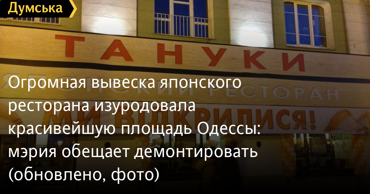 При этом огромная и сомнительная с эстетической точки зрения вывеска московских «японцев» вызвала ожесточенную критику со стороны горожан, уверенных, что подобному убожеству не место не только на Екатерининской, но и вообще в исторической части Одессы.
