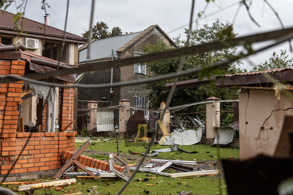 Як передає кореспондент «Думської», від вибухової хвилі й осколків постраждала ціла вулиця — півтора десятка домоволодінь. За 20 метрів від житлових будинків зяють дві величезні вирви від балістичних ракет, випущених ворогом із території окупованого Криму. Устояні паркани, стовпи та дерева зрешечені осколками. У будинках вибито скло, знесено дахи.