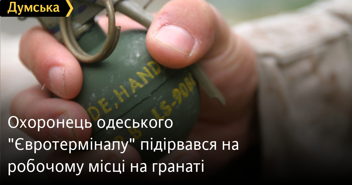 Охоронець одеського «Євротерміналу» підірвався на робочому місці на гранатіОхоронця приватного логістичного центру для фур «Євротермінал» госпіталізували з тяжкими травмами, яких він зазнав унаслідок вибуху осколкової гранати в його будці. У правоохоронних органах повідомили, що вибухнула граната М-67 американського виробництва. Кільце, важіль і осколки від неї виявили на місці інциденту. За попередньою версією, чоловік приніс гранату на роботу і через необережне поводження з нею допустив її підрив. Чоловік отримав закриту черепно-мозкову травму, струс головного мозку, травму живота, множинні садна та крововиливи. Помітили помилку? Виділяйте слова з помилкою та натискайте control-enter |