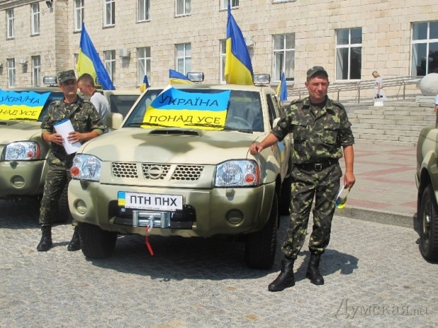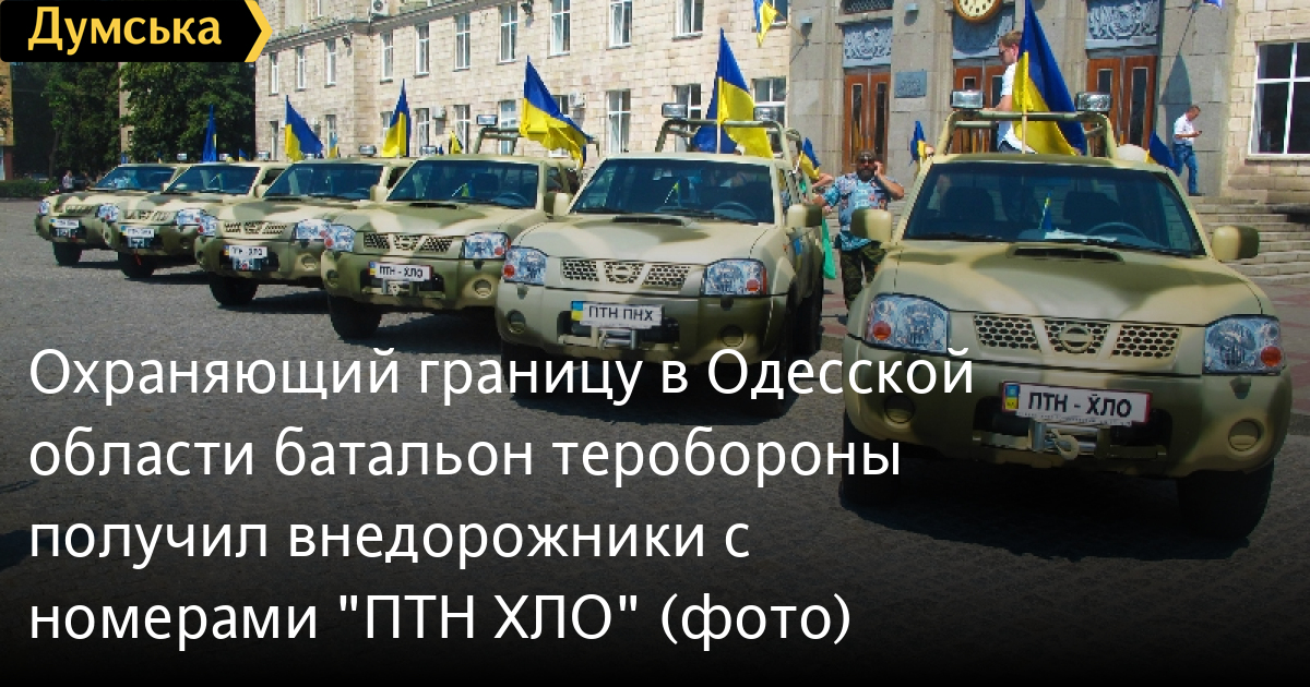 Батальону территориальной обороны «Черкассы», который выполняет задачи по охране госграницы в Котовском районе Одесской области, передали 6 новых пикапов-внедорожников Nissan NP 300 с номерами «ПТН ХЛО».