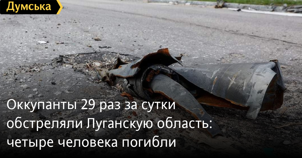 За минувшие сутки российские оккупанты 29 раз обстреливали жилую инфраструктуру в Луганской области. В результате четыре человека погибли, еще четверо получили ранения.