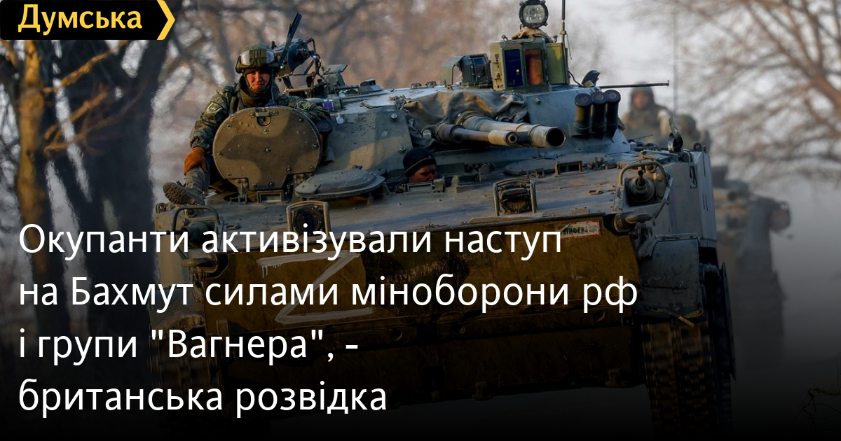 Наступ на Бахмут Донецької області активізували російські окупанти за рахунок поліпшення взаємодії сил мо рф і групи «Вагнера».