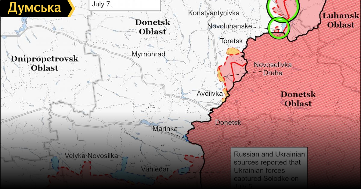 Оккупанты готовятся к одновременному наступлению на Славянск и Краматорск, — Институт изучения войныВойска российских оккупантов, вероятно, будут штурмовать Краматорск и Славянск в Донецкой области одновременно — наступление готовится сразу с трех сторон. Как сообщают аналитики Института изучения войны (ISW), российские нацисты добились незначительных успехов на юго-восток от Северска и продолжили наступательные действия на запад от Лисичанска. Оккупанты нанесли артиллерийские удары к югу от Барвенкова и обстреляли Никополь, Новопавловку и несколько населенных пунктов на северо-запад от Славянска. Эксперты считают, что эти удары могут свидетельствовать о том, что оккупанты стремятся обойти Барвенково с востока и либо двигаться в направлении шоссе E40 Изюм-Славянск для продвижения на юго-восток в сторону Славянска, либо — прямо на юго-восток от Барвенкова в сторону Краматорска. Не исключено, что путинские войска создают для себя условия, чтобы вести одновременное, параллельное наступление на Краматорск и Славянск. В институте также сообщили, что войска рф накануне проводили ограниченные попытки наступления и наносили воздушные, артиллерийские и ракетные удары по всей линии фронта. Сейчас россияне восстанавливают силы и создают условия для новых существенных наступлений в ближайшие недели или месяцы. Поэтому ожидать крупных наступательных операций от оккупантов не стоит. СМЕРТЬ РОСІЙСЬКИМ ОКУПАНТАМ! Помітили помилку? Виділяйте слова з помилкою та натискайте control-enter |