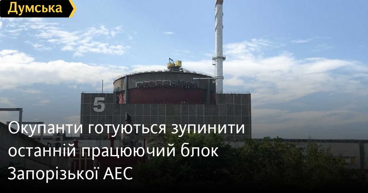 П'ятий енергоблок Запорізької АЕС - останній, що працює на окупованій електростанції, — може найближчим часом бути виведений у режим «холодної зупинки».