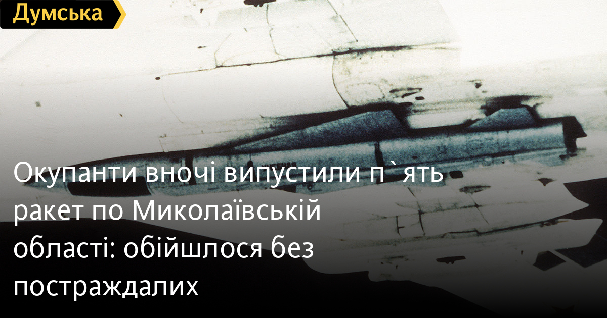 Уночі під час масштабної повітряної тривоги російські нацисти випустили п'ять надзвукових ракет Х-22 по Миколаївській області.