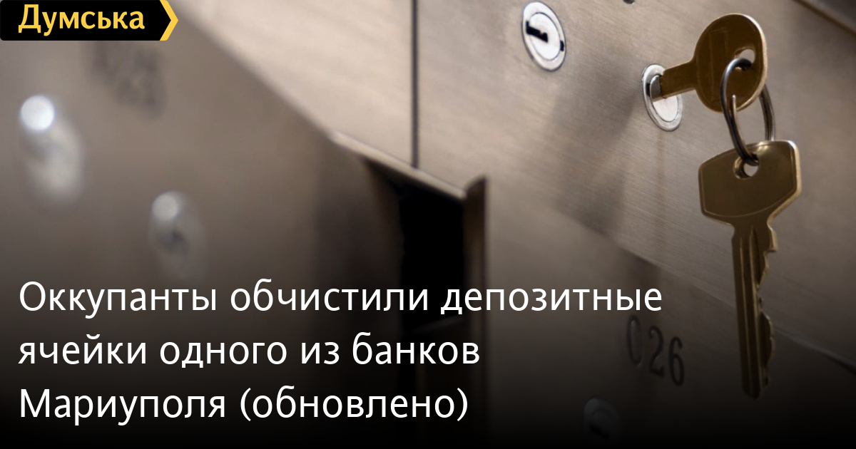 Окупанти обчистили депозитні скриньки одного з банків Маріуполя (оновлено)Депозитні скриньки банку ПУМБ у Маріуполі були розкриті та пограбовані російськими нацистами. Причому це було зроблено ще до повної окупації міста, повідомляє радник мера міста Петро Андрющенко. За його словами, у тому числі з цим пов'язане добровільне рішення Андрія Висоцького, який управляє банком, залишитися в місті і піти на співпрацю з ворогом. «Наші джерела повідомляють про те, що саме він безпосередньо приклав руку до пограбування, забезпечив їхнє спокійне розкриття до повної окупації міста», — пише Андрющенко. Що саме було у скриньках — невідомо. На початку другої фази війни вони були закриті. ОНОВЛЕНО 9 липня о 19:31. Прес-служба банку ПУМБ зв'язалася з «Думською» та уточнила інформацію про інцидент. Представники банку повідомили, що з 2014 року ПУМБ не надавав послуги депозитарних скриньок або персональних сейфів у регіонах, які знаходилися в безпосередній близькості до територій, непідконтрольних українській владі. Станом на 24 лютого 2022 року банк мав депозитарії у 20 відділеннях Київського, Одеського, Львівського та Харківського регіонів. У Маріуполі персональних сейфів не було, послуга депозитарію не надавалась. Через постійні обстріли з боку російських загарбників 16 відділень та 95 банкоматів ПУМБ у місті Маріуполь та одне відділення та два банкомати ПУМБ у Волновасі з березня були втрачені – банк втратив контроль та доступ до відділень та АТМ на цих територіях. ПУМБ унеможливлює будь-яку можливість співпраці з російським агресором і категорично засуджує будь-які прояви колабораціонізму. Обслуговування клієнтів зруйнованих та призупинених відділень здійснюється дистанційно в мобільному додатку ПУМБ Online, за допомогою інтернет-банкінгу, на платформі прийому платежів PayHub.com.ua або у Viber-банку ПУМБ та діючих відділеннях. СМЕРТЬ РОСІЙСЬКИМ ОКУПАНТАМ! Помітили помилку? Виділяйте слова з помилкою та натискайте control-enter |