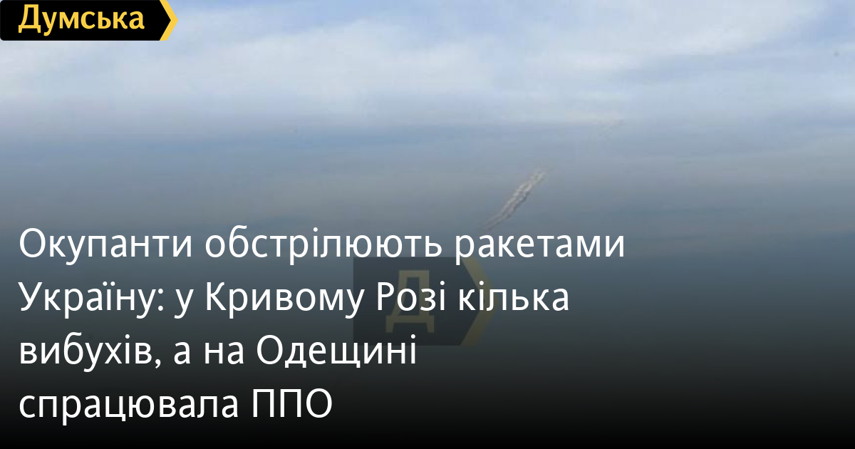 Голова міської військової адміністрації Кривого Рогу Олександр Вілкул повідомив, що по місту було завдано ракетного удару. Повідомляється, що пролунали вже шість вибухів. Інформація про руйнування та постраждалих встановлюється.