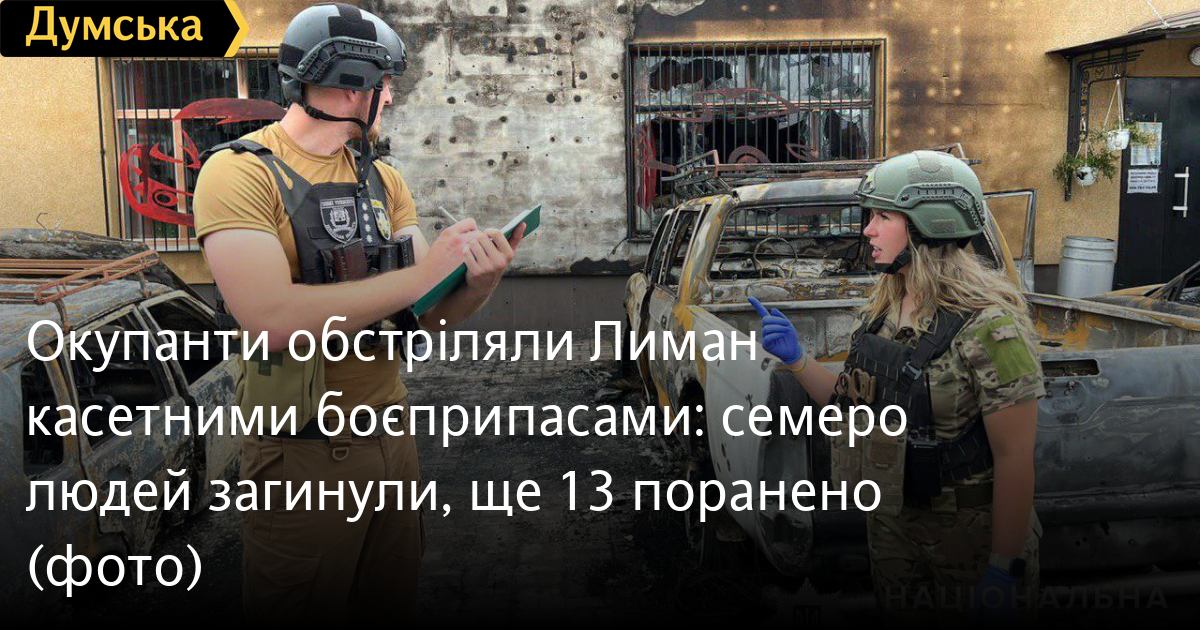 Семеро людей загинули, а ще 13 дістали поранення внаслідок обстрілу окупантами вранці 8 липня Лиману Донецької області.