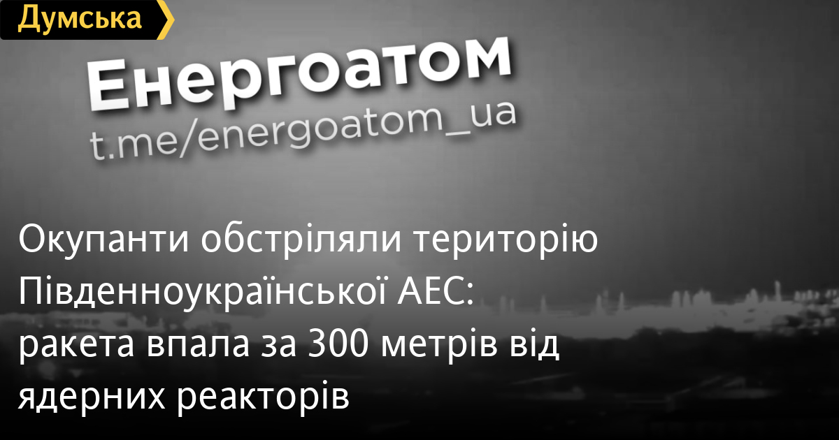 Як повідомили в «Енергоатомі», противник здійснив ракетний обстріл території ЮАЕС о 00:20. Ракета впала за 300 м від реакторів. Ударною хвилею пошкоджено будинки, розбито понад 100 вікон.