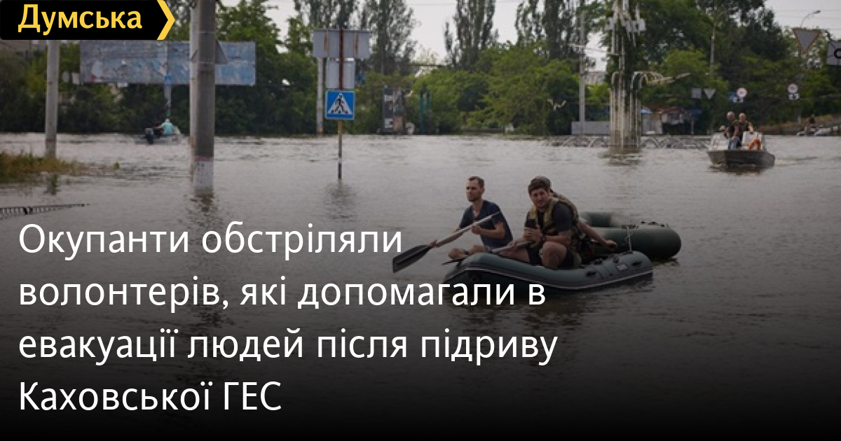 Як повідомив голова Херсонської ОВА Олександр Прокудін, з моменту терористичного акту на ГЕС евакуація постійно проходить під вогнем. 14 червня загарбники обстріляли човен із волонтерами, внаслідок чого двоє людей дістали поранення.