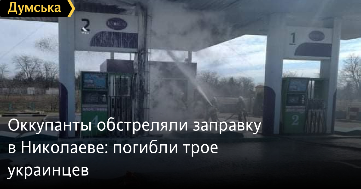 В результате вражеского обстрела в Корабельном районе Николаева произошло возгорание на автозаправочной станции. Как сообщили в пресс-службе ГСЧС Украины, ликвидацией пожара на площади 10 кв.м. занимались огнеборцы 5-й государственной пожарно-спасательной части. В результате ЧП ранения, несовместимые с жизнью, получили трое мужчин. Одна женщина пострадала. Ее доставили в лечебное учреждение. СМЕРТЬ РОСІЙСЬКИМ ОКУПАНТАМ! Помітили помилку? Виділяйте слова з помилкою та натискайте control-enter |