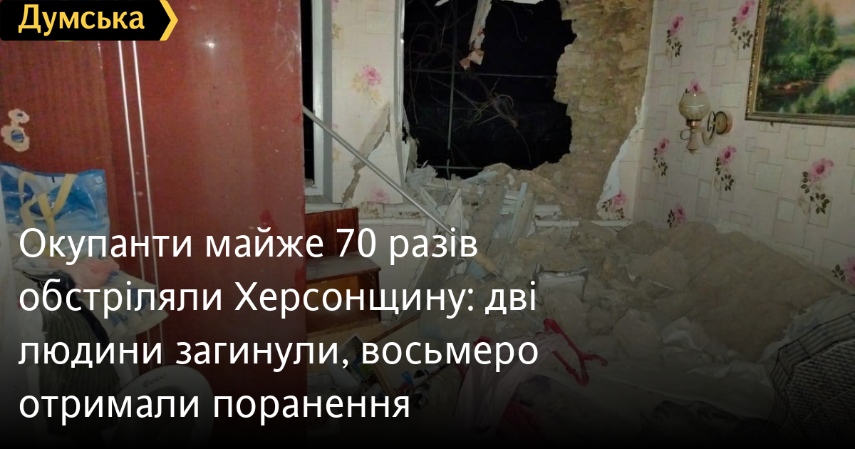 Дві людини загинули, а ще восьмеро отримали поранення внаслідок обстрілу російськими окупантами території Херсонщини 8 грудня.
