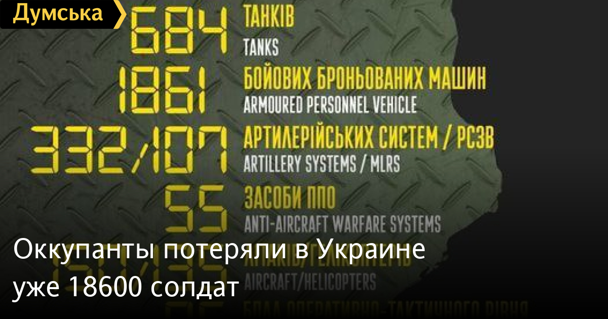 По данным ведомства, с начала российского вторжения армия противника потеряла 18600 солдат и офицеров.