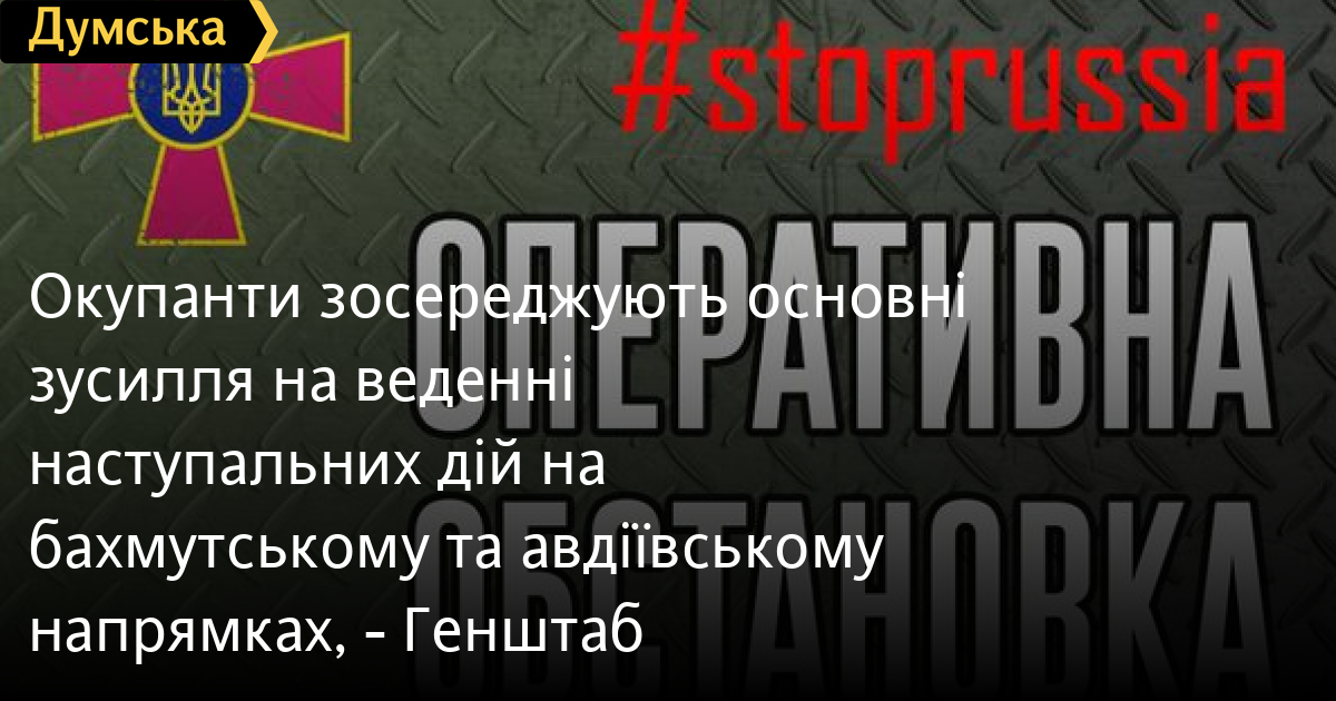 На донецькому напрямку ворог основні зусилля зосереджує на веденні наступальних дій на бахмутському та авдіївському напрямках. На краматорському та новопавлівському напрямках намагається покращити тактичне положення, здійснює вогневе ураження наших військ. Намагається сковувати дії підрозділів Сил оборони та не допустити їх перекидання на інші напрямки.
