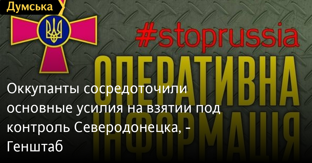 На северодонецком направлении оккупанты ведут штурмовые действия в районах населенных пунктов Северодонецк и Тошковка, боевые действия продолжаются.