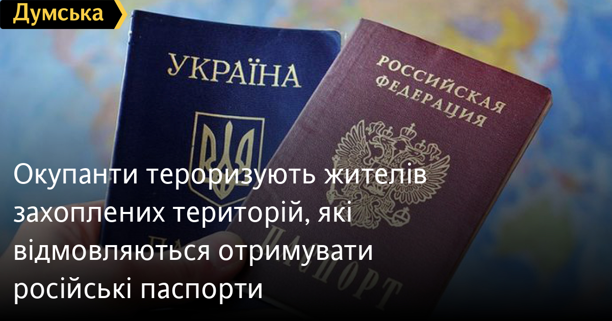 Примусову паспортизацію жителів захоплених територій продовжують окупанти. На тих, хто відмовляється отримувати паспорт країни-агресора, чинять фізичний та психологічний тиск.