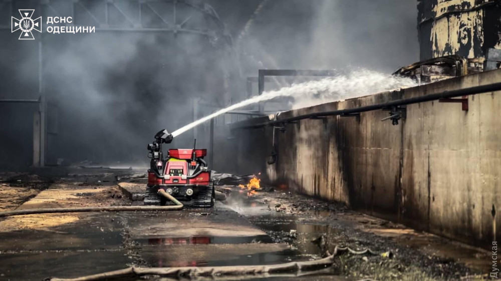 ОНОВЛЕНО О 14:48. Держслужба з надзвичайних ситуацій опублікувала фото з місця прильоту ворожої ракети. У відомстві зазначили, що вогонь гасять за допомогою спеціалізованих роботів.