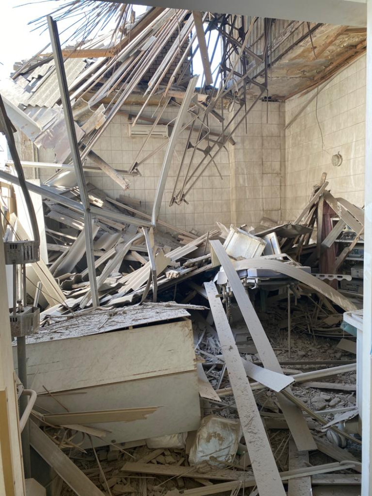 Зруйновано два поверхи лікарні та медичний автотранспорт. На місці триває розбір завалів.