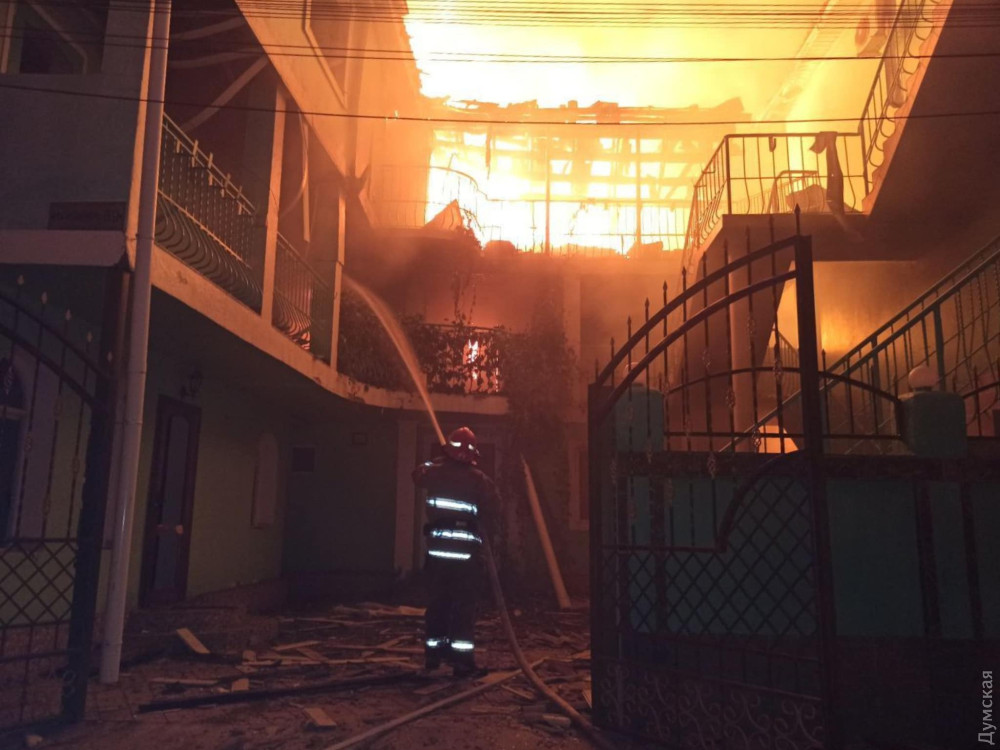 В Оперативному командуванні «Південь» повідомили, що внаслідок влучення двох ракет сталася пожежа на території однієї з баз відпочинку. Також було пошкоджено декілька приватних будинків неподалік.