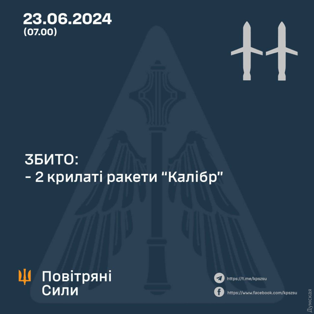 У Повітряних силах Збройних сил України повідомили, що дві ракети вдалося збити над Київською областю.