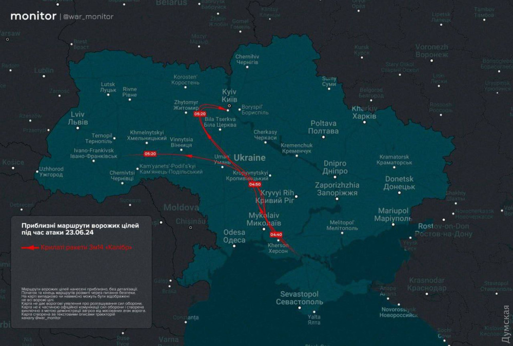 Три ракети «Калібр» запустили ворожі моряки в акваторії Азовського моря вночі 23 червня.