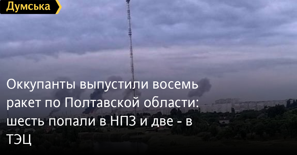 Утром 18 июня вражеские войска нанесли ракетный удар по Полтавской области. Шесть ракет попали в Кременчугский нефтеперерабатывающий завод и две - в ТЭЦ.