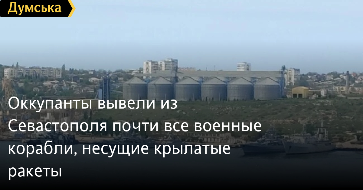 Оккупанты вывели из Севастополя почти все военные корабли, несущие крылатые ракетыВсе корабли, вооруженные крылатыми ракетами, покинули места стоянки во временно оккупированном Севастополе и вышли в море. Об этом сообщает «Крым. Реалии». Корреспондент издания заявил, что у причалов военно-морской базы нет трех фрегатов проекта «Буревестник», четырех малых ракетных кораблей проекта «Буян-М», двух ракетных катеров проекта 1241. Также в море вышел большой десантный корабль проекта «Тапир». В Севастополе осталась группировка больших десантных кораблей, патрульные корабли, один ракетный корабль на воздушной подушке проекта «Сивуч», один ракетный катер проекта 1241. СМЕРТЬ РОССИЙСКИМ ОККУПАНТАМ! Заметили ошибку? Выделяйте слова с ошибкой и нажимайте control-enter |