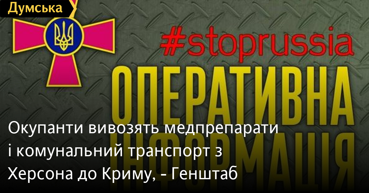 Окупанти вивозять медпрепарати і комунальний транспорт з Херсона до Криму, — ГенштабП'ять ракетних та сім авіаційних ударів завдали російські окупанти протягом доби по території України. Крім того, вони здійснили понад 29 обстрілів з реактивних систем залпового вогню. Як повідомляється в вечірньому зведенні Генштабу, ворожих ударів зазнали райони більш як 15 населених пунктів. Транспортні засоби, що знаходились у комунальній власності міста Херсон, переміщено загарбниками до тимчасово окупованого Криму. Підтверджується інформація щодо вивезення медичних препаратів з більшості аптек міста. З 26 жовтня цього року окупаційна влада відсторонила від роботи медичний персонал кількох міських лікарень, медичне обладнання з яких російські окупанти вивезли. Під приводом проведення підготовки до оборони міста Нова Каховка російські військові проводять примусову евакуацію місцевого населення з вулиць, що знаходяться на узбережжі річки Дніпро. Авіація Сил оборони України протягом доби завдала по ворогу 17 ударів. 11 із них - по районах зосередження озброєння та військової техніки, три - по взводних опорних пунктах, а також три - по позиціях комплексів протиповітряної оборони противника. На різних напрямках українська протиповітряна оборона збила авіаційну керовану ракету Х-59 та два БпЛА «Орлан -10» ворога. Підрозділи ракетних військ і артилерії за поточну добу уразили чотири райони зосередження озброєння та військової техніки, два склади боєприпасів, зенітну ракетну установку та шість інших важливих військових об’єктів окупантів. СМЕРТЬ РОСІЙСЬКИМ ОКУПАНТАМ! Помітили помилку? Виділяйте слова з помилкою та натискайте control-enter |