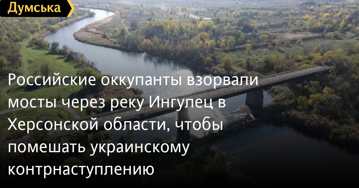 «Враг выискивает средства и меры противодействия контрнаступлению наших сил. Спецподразделениями рашистов подорваны мосты через реку Ингулец в районе Давыдова Брода и Большой Александровки», — говорится в сводке «Юга».