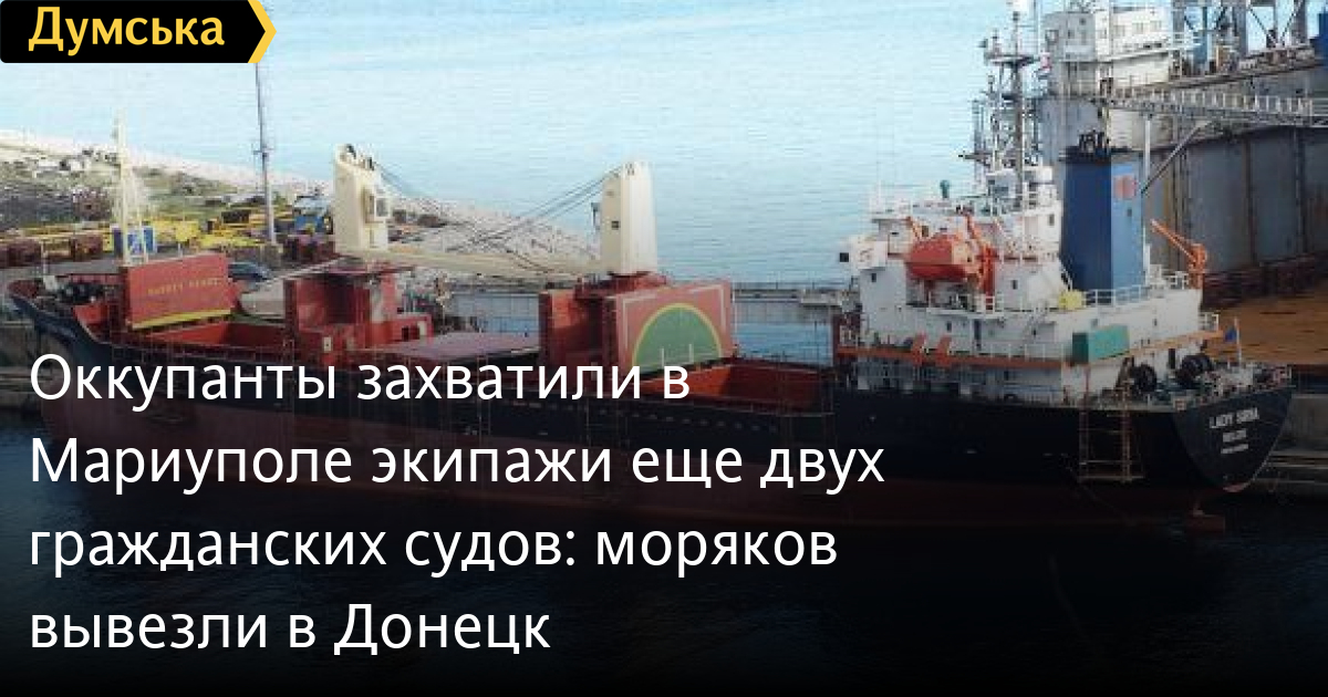 Экипажи двух гражданских судов, находившихся на территории Мариупольского морского торгового порта, захватили российские нацисты. Об этом сообщает уполномоченная Верховной Рады Украины по правам человека Людмила Денисова.