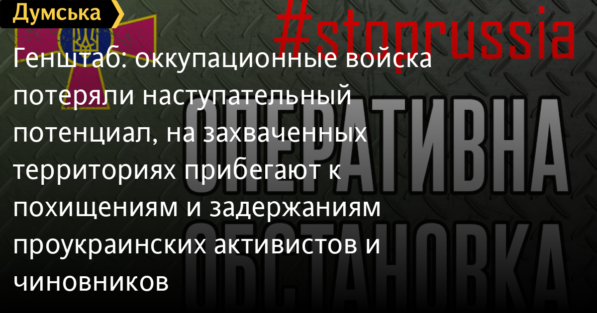 Оккупационные войска потеряли наступательный потенциал и остановлены по всем направлениям. У противника значительные проблемы с логистикой, продолжает нести потери. На отдельных направлениях блокирует подразделения Вооруженных сил Украины.