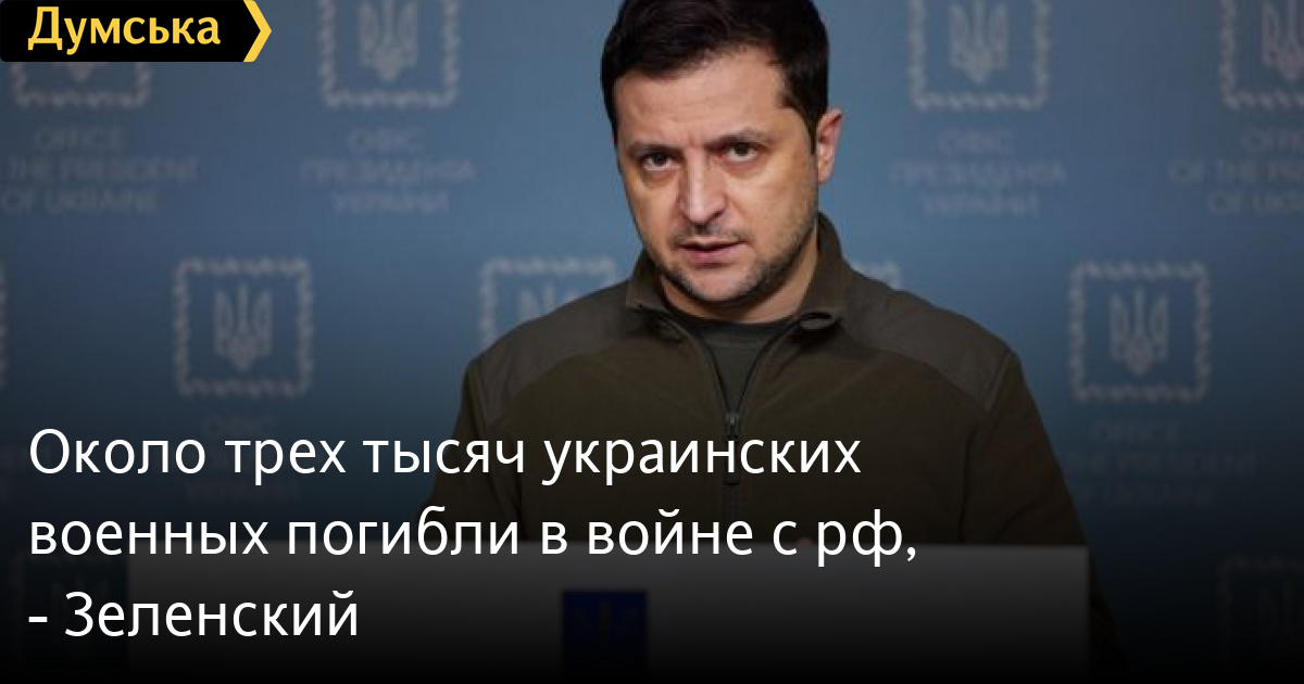 Президент Украины Владимир Зеленский заявил о гибели 2,5 - 3 тысяч украинских военных в войне с российскими оккупантами.