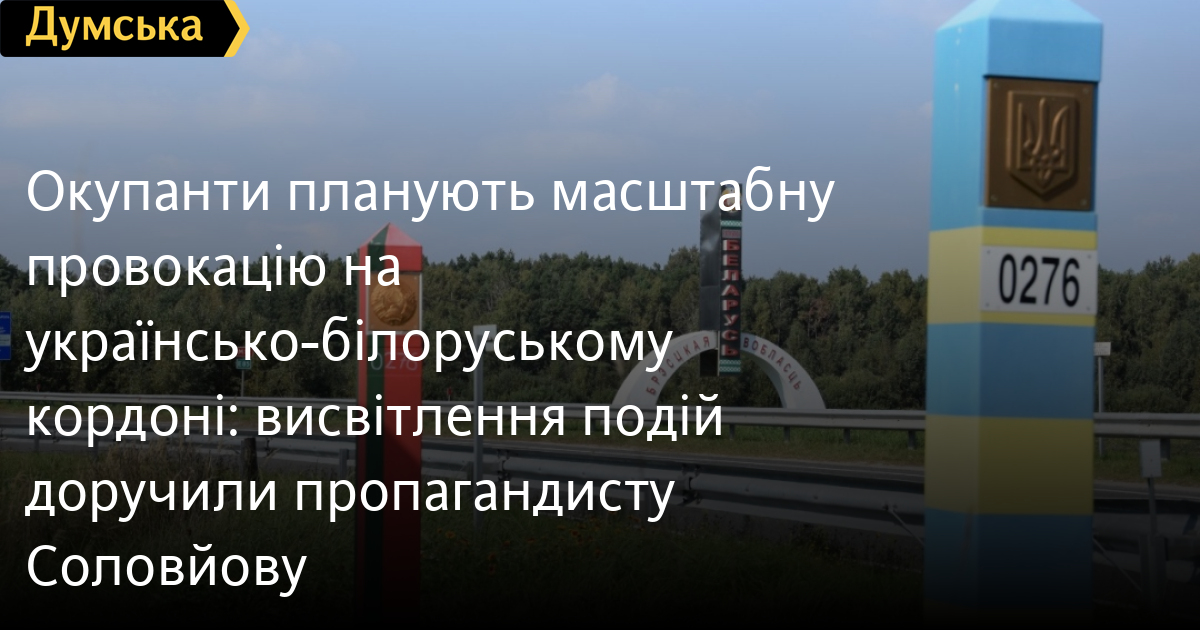 Окупанти планують масштабну провокацію на українсько-білоруському кордоні: висвітлення подій доручили пропагандисту СоловйовуВійськово-політичне командування рф планує проведення масштабної провокації на кордоні України і білорусі найближчим часом. Для детального висвітлення провокації в РБ має прибути головний російський пропагандист Володимир Соловйов, повідомили в Головному управлінні розвідки Міноборони України. 11 березня планується організація телерадіомоста та пряма трансляція з місця подій для пропагандистських ЗМІ в рф. Для цього на територію білорусі прибувають кілька груп росіян. Імовірно, плани окупантів передбачають загрозу руйнування об’єктів інфраструктури та можливі жертви серед мирного населення. «Мета провокації – створення ворожої суспільної думки щодо України з боку білоруських громадян та забезпечення повноцінної участі збройних сил країни у війні на боці рф», — ідеться в повідомдені воєнних розвідників. СМЕРТЬ РОСІЙСЬКИМ ОКУПАНТАМ! Помітили помилку? Виділяйте слова з помилкою та натискайте control-enter |