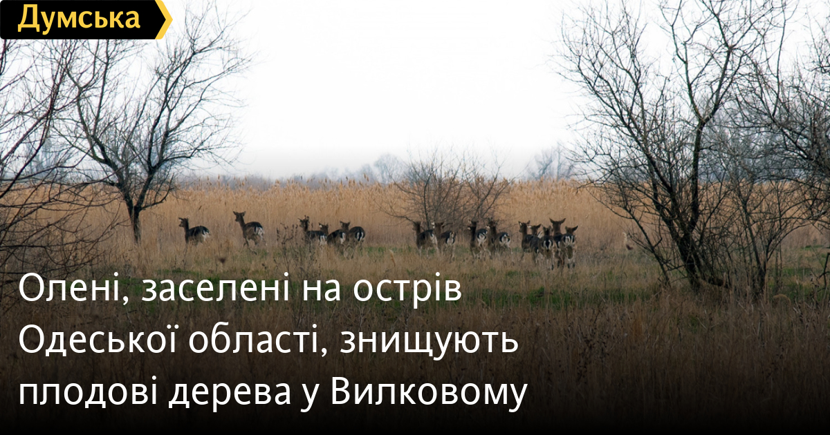 Олені та лані, завезені на острів Білгородський у дельті Дунаю майже рік тому, завдають шкоди плодовим деревам, що ростуть уздовж Білгородського каналу. Влада міста разом із фахівцями природоохоронної організації Rewilding Ukraine розробляють варіанти вирішення проблеми, розповів міський голова Матвій Іванов.