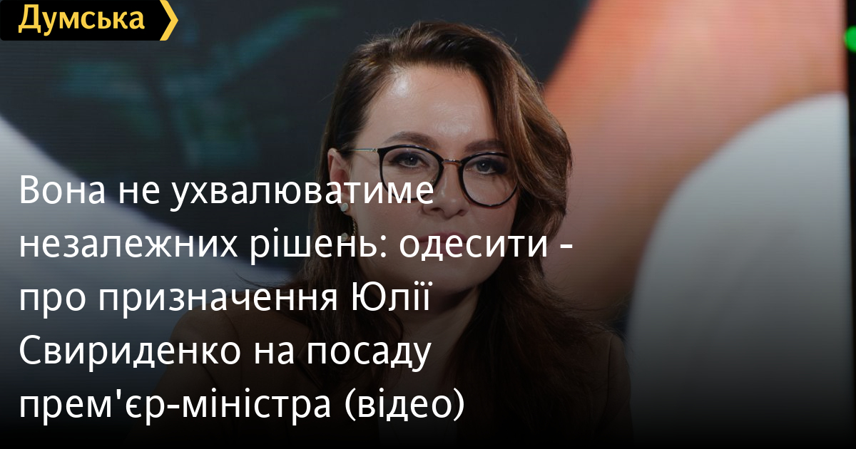 «Вона не ухвалюватиме незалежних рішень»: одесити — про призначення Юлії Свириденко на посаду прем'єр-міністра (відео)